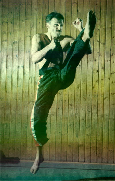 Erwin Miinch möchte fit sein von den Haarwurzel bis in die Fußzehen, dafüir trainiert er und das ist der Grund, warum er Kickboxen und neuerdings auch Ju-Jutsu betreibt. Beweglicbkeit, Schnelligkeit und Kraft aller Körperpartien werden hier optimal ausgebildet. Doch wie schaftt man es, mit 43 Jahren im Hochleistungssport deutlich Jüngere auszustechen? "Das ist reine Kopfsache und eine Frage der Disziplin", ist sich Müinch ganz sicher. Er trainiert drei- bis viermal in der Woche jeweils zwei Stunden und gönnt seinem Körper zwischen den Trainingseinheiten möglichst einen Tag Pause. "Zu viel des Guten schadet demTrainingserfolg", weiß Münch. Er ist kein Kostverächter, isst alles und gönnt sich auch mal ein Bier. "Aber alles in Maßen, nicht mehr essen, als man verbrennt", lacht der mehrfach prämierte Metzgermeister. Miinch misst 1,80 Meter und wiegt derzeit 79 Kilogramm |