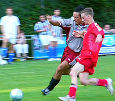Ein Wällschter Spieler düpiert seinen Gegenspieler