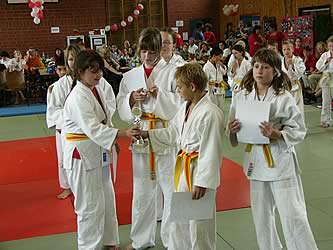 Urkunde, jede Mannschaft einen Pokal für die jeweils erzielte Platzierung