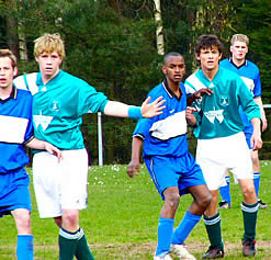 Tor: N.Daum (FE)![]() Die Spieler in Erwartung eines Eckballes (JSG Seckm/LW/Haingr = blaue Trikots). Aus der Begegnung gegen Harreshausen (1:2) . |