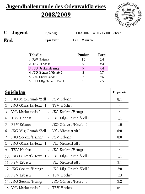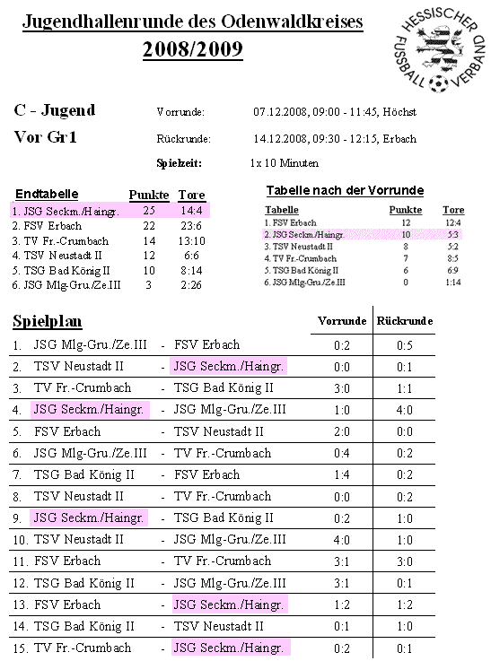 I, 4. RW Darmstadt, 5. JSG Lützelbach, 6. TSV Seckmauern, 7. TSV