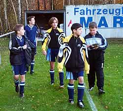 02.11.02 14 Uhr in Haingrund JSG Lützelb/Seckm - TSG Bad König 5:2 (3:1) Revanche für die unglückliche 6:5-Niederlage in der Qualifikation. Der Gast trat nur mit 10 Mann an. Das soll die gute Leistung der JSG jedoch nicht schmälern. Sie war in allen Manschaftsteilen besser besetzt. Unsere Abwehr um Torwart M.Hillerich und Libero T.Schäfer stand sicher. Im Mittelfeld zeigte M. Haas ein gutes Spiel und vorne wirbelten S.Özdemir und Max Henkes. Ingesamt eine überzeugende Mannschaftsleistung. Tore: S. Özdemir 2, M. Haas 2, M. Henkes