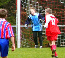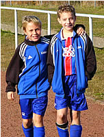 18 Uhr JSG Seckmauern - TSG Steinbach 2:2 Tore: David, Elena In der ersten Halbzeit war der Gast insgesamt spielbestimmend und hatte die besseren Chancen, ohne jedoch diese nutzen zu können. Zwei "Böcke" von Torwart Nicolai brachten sie dann mit 2 : 0 in Führung. Mit hängenden Köpfen und Tränen in den Augen bei Nicolai gingen sie in die Kabine. Nach einigen Jokes in der Pause waren sie wieder locker und wollten die Böcke von Nicolai ausbügeln. So war es auch. In der zweiten Hälfte spielte nur noch die JSG bei wenigen Kontern von Steinbach. David erzielte nach schönem Durchsetzen gegen 3 Gegenspieler den Anschlußtreffer zum 2:1. Dorian nagelte eine Freistoß aus 18 m unter die Latte. Es war wie Wembley - der Ball war drin, das Tor wurde aber nicht gegeben. Nachdem sich David erneut gut durchsetzte hielt der sehr gute Torhüter von Steinbach zunächst den Schuß. Elena konnte dann den Abpraller mit dem linken Fuß zum 2:2 einschießen. Die Mädchen und Jungs haben sich als tolle Mannschaft präsentiert und haben sich das 2:2 verdient. |