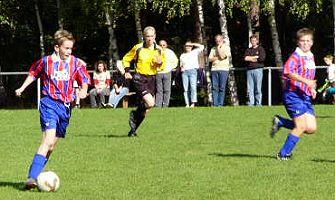 18:30 Uhr TSG Zell - JSG Seckmauern 0:5 (0:2) Tore: Patrick 2, Kevin,David, Manuel Überraschend stark spielte die neu formierte D-Großfeldmannschaft in ihrem ersten Qualifikationsspiel, bedenkt man, dass gerade einmal 3 Spieler der Mannschaft Großfelderfahrung haben. Nach anfänglicher Nervosität wurde unsere Mannschaft immer sicherer und überlegen. Nach dem 1:0 (18.) durch Manuel Hillerich bekamen die Mädels und Jungs noch mehr Selbstvertrauen. Kurz vor der Halbzeit markierte David Raitz das 2:0 (27.).In der 2. Hälfte spielten wir noch überlegener und die Tore von Patrick Beck 3:0 (36.) und 4:0 (39.), sowie Kevin Schmauss zum 5:0 (42.) fielen zwangsläufig. Insgesamt war die Mannschaft in allen Belangen, insbesondere auch konditionell, klar stärker als der Gastgeber und gewann auch in dieser Höhe verdient. Weiteres Ergebnis: SV Lützel-Wiebelsbach – JSG Vielbrunn/Würzberg 0:6. |