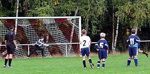 - JSG Rimhorn 1:3 (0:1)Tor: Kevin Schmauß (uw)Rimhorn war den gewissen "Tick" besser und hatte auch mehrere gute Einzelspieler. Seckmauern vergaß oft bei vielversprechenden Chancen den Torschuß. Das Tor zum 1:3 fiel kurz vor dem Ende (as)Von Anfang an engagiert und druckvoll ging unsere Mannschaft zu Werke. Einige Chancen wurden herausgespielt, die jedoch leider zu keinem Tor führten. Pech hatte die Mannschaft bei einem Freistoß an die Latte. Rimhorn kam gegen Ende der ersten Halbzeit zu ersten Kontern und ging kurz vor der Pause durch einen Foulelfmeter in Führung. Nach der Halbzeit war die Mannschaft für ca. 10 Minuten durcheinander und ungeordnet. In dieser Zeit konnte Rimhorn auf 0:3 erhöhen. Danach besann man sich wieder und erzielte durch einen Konter den Anschlußtreffer. In den letzten Minuten wurde noch einmal alles probiert. Es reichte aber nicht mehr für einen weiteren Treffer. Der Mannschaft ein großes Lob für die kämpferische Einstellung und Laufbereitschaft. Mit etwas Glück, dem rechten Paß zur richtigen Zeit, hätte das Ergebnis auch anders lauten können. ![]() Der Anfang vom Ende: Rimhorn verwandelt einen Elfmeter zur 1:0 Führung |