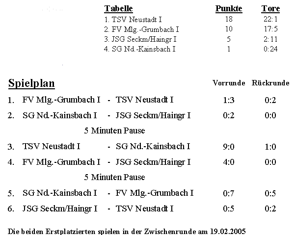 E-Jugendfußball-Hallenturnier von SSV Brensbach vom Sa 19.02.2005
