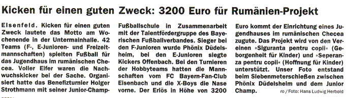 März 2006 Benefizturnier, Untermainhalle Elsenfeld (aus ME vom 22.März 2006) ![]() ![]() JSG - Röllfeld 0:0 JSG - Breitendiel 0:3 JSG - Miltenberg II 0:4 JSG - Kickers Offenbach 0:5 |
