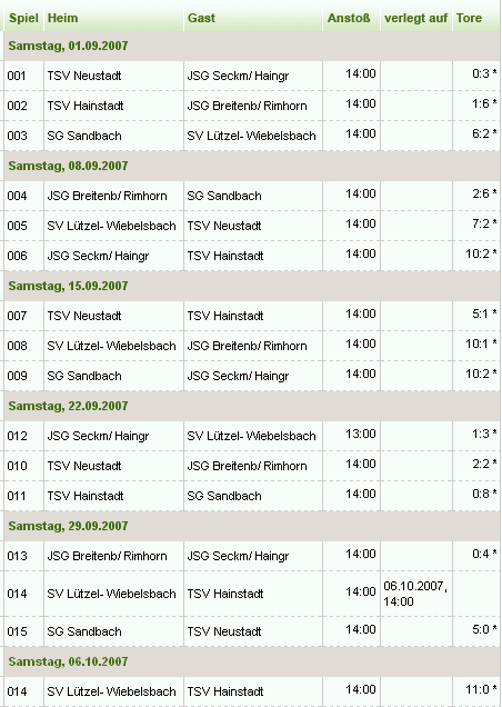 22. Sept 2007 14 Uhr JSG Seckm/ Haingr - JSG Brensb/Nd.Kainsb/Hum 5:4 |