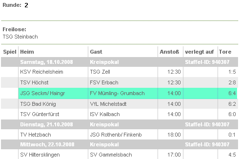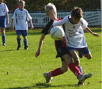 E2-Jugend 9. Aug 2008 TSV Höchst II - JSG Seckmauern II 5:1 (Tor: Jannik Beck) TSG Bad - König II - VfL Michelstadt II 7:8 KSV Reichelsheim II - TSG Steinbach II 3:2 TSV Günterfürst II - JSG Rothenb/Finkenb II 5:8 18. Okt 14 Uhr E1 JSG Seckmauern - FV ;Mlg-Grumbach 6:4 Tore: Philipp 3, Calvin 2, Kevin ![]() Mit etwas Glück gewann Seckmauern das Pokalspiel gegen Mlg-Grumbach 6:4. Zur Halbzeit stand es 3:3. Hier setzt sich Kevin (re) gegen seinen Widersacher durch |