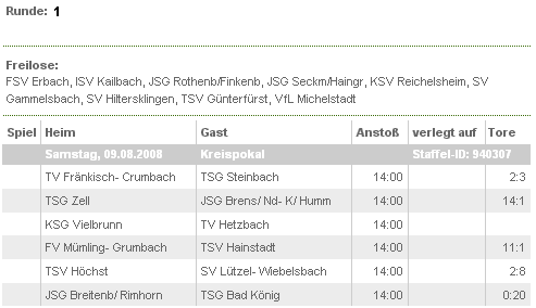 E1-Jugend![]() ![]() JSG Seckmauern - FV Mlg-Grumbach 6:4 Tore: Philipp 3, Calvin 2, Kevin Fr 3. April 2009 17.30 Uhr FSV Erbach - JSG Seckmauern 7:1 |
