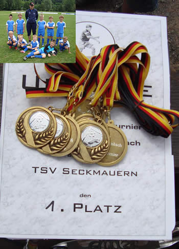 Juni 2009 Turnier beim FV Mümling-Grumbach ---> 1.Platz Ergebnisse ![]() ![]() Die erfolgreiche Mannschaft der Bambinis nach dem Turnier in Mlg-Grumbach mit der Urkunde und ihren Medaillen. 27. Juni 2009 Turnier in Münster Platz 8 von 10 (Plan) 4. Juli 2009 Turnier beim TSV Weckbach --> 2 Platz von 7 Teams (1 Mannschaft hatte abgesagt) Gruppenspiele Finale |