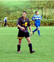 Hier bewacht er Kleestadts Spielertrainer Heindel. Links davon