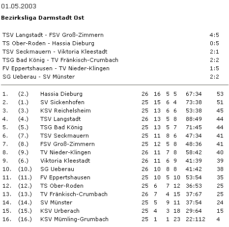 dem Vorletzten Urberach wurde verlegt) und setzte sich zum ersten Mal