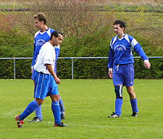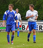 LA vom 31.10.03) TSV Seckmauern II – GSV Breitenbrunn 0:7 (0:4) (TSV-Sicht) Die Gäste aus Breitenbrunn gewannen völlig verdient gegen die TSV-Reserve, die vor allem das starke Mittelfeld der Gäste nie in den Griff bekam. So fielen in regelmäßigen Aständen die Tore zum etwas zu hoch ausgefallenen GSV-Sieg. (GSV-Sicht) Im Ligapokal konnte sich die GSV Breitenbrunn gegen die Reserve des TSV Seckmauern problemlos durchsetzen. Es war der Tag der Billinger-Zwillinge. Francesco trug mit drei Treffern und Marco mit zwei Treffern zum hohen Sieg bei. In der 11.Min. ging der GSV durch Mario Schnellbacher in Führung. Danach erhöhten F.Billinger (25.) und M.Billinger (28./29.) innerhalb vier Minuten auf 0:4. Nach der Pause setzte F.Billinger einen Freistoß zum 0:5 ins Netz (50.) ZwMinuten später traf er wiederum aus 16m ins kurze Eck. Den Schlußpunkt zum 0:7 setzte der zuvor eingewechselte Dominik Olt in der 74.Min. |