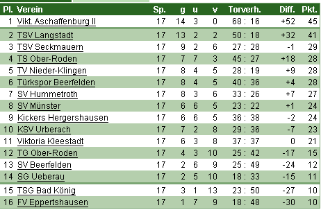 gab es für SV Hummetroth gegen Viktoria Kleestadt. In der Tabelle