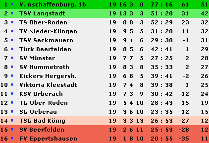 Tabelle wieder vor den SV Beerfelden auf Platz vierzehn. Der SV Beerfelden