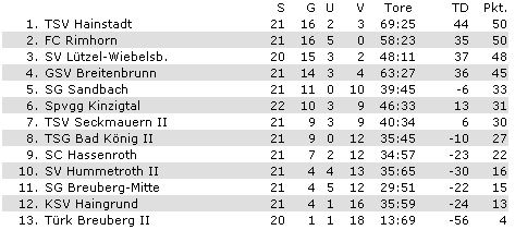 und der TSV Hainstadt wieder Morgenluft. Das 1:1 von FC Rimhorn beim neuen