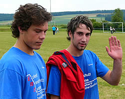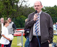 mit auf den Weg. Links Fußballabteilungsleiter Michael