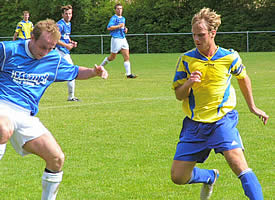 Sa 06.08.05 1.Spieltag 15 Uhr SG Ueberau - SV Sickenhofen 0:0 So 07.08.05 1.Spieltag 15 Uhr VFL Michelstadt - TV Nieder-Klingen 1:3 SV Hummetroth - TS Ober-Roden 1:3 Türk Beerfelden - SV Münster 0:4 KSV Urberach - FC Ueberau 1:4 TSV Seckmauern - TSG Bad König 2:2 Kick. Hergershausen - Vikt. Kleestadt 2:1 Start in die neue Bezirksliga-Saison TSV Seckm - TSG Bad König 2:2 (1:0) Tore: 1:0 (13.) Krejtscha, 2:0 (72.) Burak, 1:2 (73.) Eigentor Bätz, 2:2 (75.) TSV Seckmauern: Schäfer – Stapp, Wolfstädter, Burak (85. Kislinskiy), Brohm, Bätz, Seifert, Olt, A. Stier, Löffler, Krejtscha Seckmauern kann zu Hause gegen Bad König einfach nicht gewinnen. Auch heute, zu Saisonbeginn, mußte man sich mit einem Unentschieden zufrieden geben, obwohl man nach 72 Minuten mit 2:0 in Führung lag. Danach fielen innerhalb von drei Minuten die beiden Gegntore zum letzlich gerechten Endstand. Eine Minute vor Schluß durfte sich Seckmauern aber bei Bad Königs Hallstein „bedanken“, der eine dicke Gelegenheit zum Siegtreffer für die Gäste vergab. Sein Schuß ging weit über das Tor. Nach 8 Minuten (ein Bad Königer Abwehrspieler lag verletzt am Boden und konnte einen für ihn gedachten Paß nicht aufnehmen) stand Krejtscha plötzlich frei vor dem Gästetor und legte quer auf Olt. Dieser konnte sich nicht entscheiden, ob Torschuß oder nochmals Querpaß, so daß der TW letzlich kärend eingreifen konnte. Fünf Minuten später ein typischer Krejtscha: er zog aus 18m einfach mal ab und der Ball zappelte im Netz. Hier sah der Gästetorhüter nicht gut aus. Nur drei Minuten später fast das 2:0, doch der Heber von Burak ging am Tor vorbei. Die Gäste besaßen ihre erste Gelegenheit in der 20. Minute, doch TW Schäfer war auf dem Posten. Das war´s von der ersten Halbzeit. Im Grunde hatte man sich von beiden Mannschaften mehr erhofft. Gleich