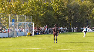 und spielte munter mit. So verschoß ein Stürmer freistehend