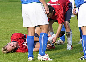 Elfmeter sicher zum 2:1. Seifert wurde minutenlang behandelt und mußte