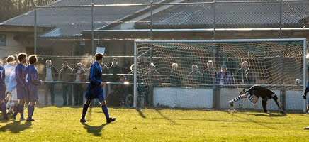Thiel im Zweikampf mit Nieder-Klingens Walther, ganz