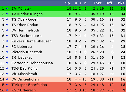 nach den Niederlagen von Münster, Nieder-Klingen und TS Ober-Roden