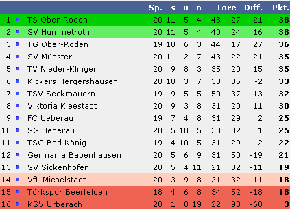 so dass die Hummetröther punktgleich mit der TS Ober-Roden den zweiten