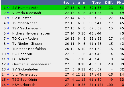 nach den heutigen Ergebnissen zumindest wieder auf den Relegationsplatz.
