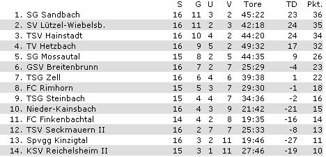 1:0 und gab die rote Laterne an den KSV Reichelsheim II ab.
