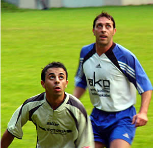 den Torschützen: Mirko Olt (li). Rechts Billinger (aus