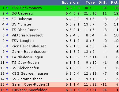 dem sechsten Spieltag weiter ungeschlagen an der Tabellenspitze. Die