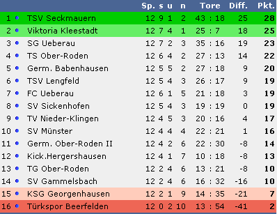 in der Tabelle heran. Für die KSG müssen indes schwere Zeiten