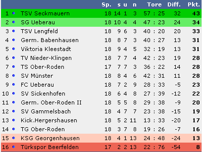 Germania Babenhausen 2:2, Schlusslicht Türkspor verlor beim SV