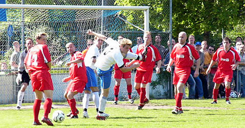 Drei Minuten vor dme Ende landete ein Kopfball von Sven Roth nur am