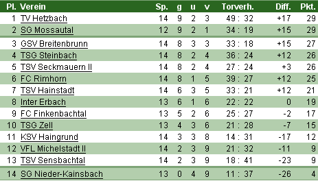ausgestattet, rangiert dahinter die SG Mossautal, nach dem sie beim TSV