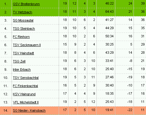 auch im vierten Spiel in Folge ohne Sieg blieb. Auch der TV Hetzbach zog