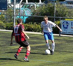 Aschaffenburger Website) Duplizität in der BOL 04.08.2007,18:49 Trotz der Neuformierung gings für die U23 in der Bezirksoberliga genauso furios los wie für die 1.Mannschaft in der Oberliga Hessen. Schon nach 3 Minuten erzielte Giulio Fiordellisi die Führung der Unterfranken. Dass das Team von Kurt Ziener noch nicht eine Einheit ist zeigte sich beim 2.Treffer der Viktoria. Unstimmigkeiten in der Hintermannschaft der Hofheimer nutzte Sven Ehser und brachte damit die Blau-Weißen mit 2:0 in Front. Auch der Beginn der zweiten Hälfte zeigte, dass die Jungs von Coach Alvarez bei solchen Temperaturen topfit sind. Manuel Krapp legte bereits 5 Minuten nach Wiederanpfiff nach und es stand wie schon am Freitag 3:0 für die Gastgeber. Aber auch hier schlich sich dann der Schlendrian ein, die scharfe Hereingabe fand seinen Abnehmer und schon stands 3:1. In der 70.Minute gar der Anschluß - Keeper Sven Schröer und seine Hintermannschaft waren sich nicht einig und der Hofheimer Stürmer bedankte sich als er den Ball unbedrängt aus 16m ins leere Tor einschieben konnte. Nochmal zittern, denn der FVH eröhte nun den Druck und dies ergab Möglichkeiten für die Viktoria das Ergebnis noch höher ausfallen zu lassen, aber selbst beste Chancen blieben ungenutzt. In der Nachspielzeit dann aber doch noch die Erlösung. Yousuf Genc war es der mit dem Schlußpfiff den 4:2 Endstand sicherstellte. Viktoria Aschaffenburg