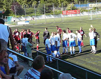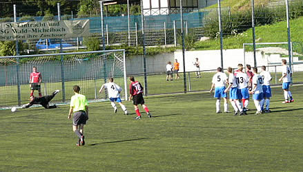 Aufstellungen Premiere für Seckmauern: zum ersten Mal in seiner Vereinsgeschichte trat man zu einem Punktspiel in der Bezirksoberliga Darmstadt an. Das allein war schon die Reise nach Wald-Michelbach wert. Dass es dort nichts zu erben gab war eher zweitrangig. Der Gegner, der sich selbst den Aufstieg als Ziel gesetzt hat war eine andere Kategorie und in allen Belangen die bessere Elf. Seckmauern war mit der 3:1-Niederlage am Ende noch gut bedient. Vor Spielbeginn wussten beide Teams nicht so recht, wo sie stehen. Seckmauern, als klarer Aussenseiter angereist, sah man die Nervösität praktisch an. Ängstlich und ohne viel Selbstvertrauen lauerte man auf das, was der Gegner wohl machen würde. Da aber auch Wald-Michelbach in den Anfangsminuten ziemlich verhalten spielte, passierte nicht viel - bis zur 8. Minute. Da hämmerte Ex-Oberligaspieler Jan Zeug einen zu kurz abgewehrten Ball von der Strafraumlinie ins Tor - 1:0. Danach zog Wald-Michelbach sein Kombinationsspiel auf, schnell und direkt. Seckmauern stand oft nur staunend dabei. Hinzu kam der für den TSV ungewohnte Kunstrasenplatz. Manche Spieler "eierten" förmlich über das Feld, immer versucht nicht den Stand zu verlieren oder die Kontrolle über den Ball zu erhalten. Die Überlegenheit des Gegners war markant. TW Schäfers Abschläge wurden oft postwendend "abgefangen" und prallten zurück, wie von einer Gummiwand. Seckmauern kam einfach nicht ins Spiel. Folgerichtig fiel das 0:2 - wieder war Jan Zeug nach einem Freistoß zur Stelle und lenkte den Ball ins Tor (22.). Wald-Michelbach dominierte die Partie. Völlig überraschend deshalb der Anschlußtreffer: Mirko Olt lupfte den Ball genial zu Billinger in den Strafraum und der lupfte wiederum den Ball über TW Kredel hinweg zum 1:2 (31.). Ein schönes und ein herausgespieltes Tor, das Mut machen hätte können. Dem war aber nicht so. Wald-Michelbach war nur kurzeitig aus dem Konzept gebracht worden, besaß aber trotzdem noch genug gute Chancen das Ergebnis wieder zu korrigieren. Dem allein stand TW Schäfer entgegen, der sich oft und gekonnt auszeichnete. In der