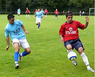 sehr stark, stellte sich nicht hinten rein. Seckmauern setzte Dabei standen vor der Partie auf der Stirn von Trainer Theo Sahm noch Sorgenfalten, der praktisch mit dem letzten Aufgebot antreten musste. Trotzdem begann die Heimelf engagiert und suchte gleich den Weg nach vorne, ohne jedoch schon zu zwingenden Aktionen zu kommen. Ganz im Gegensatz zu den Gästen, die nach zehn Minuten erstmals gefährlich vor dem von Markus Schäfer gehüteten Tor auftauchten; der Schuss von Ahmet Cuclu aus 16 Metern strich aber über den Kasten. Auch die Heimmannschaft zeigte jetzt durchdachtere Spielzüge und hatte nach einer Viertelstunde eine Gelegenheit, doch der Ball von Sven Billinger wurde sichere Beute des ansonsten eher unsicheren Dersim-Torhüter Firat Turhan. Die Führung dann in der 22. Minute, als der schon angeschlagen ins Spiel gegangene Mirco Olt einen Freistoß in den gegnerischen Strafraum zog und der Keeper den Ball genau vor die Füße von Florian Canbolat faustete, der überlegt zum 1:0 einschoss. Dersim erhöhte das Tempo, suchte den Ausgleich, ließ dabei aber die notwendige Präzision vermissen, der finale Pass kam noch nicht an. Olt wäre dann kurz vor dem Pausenpfiff des jungen, sehr gut leitenden Schiedsrichters Patrick Gehrke (Eschborn) fast das Tor des Monats gelungen, als er mit einem Heber aus gut 40 Metern nur knapp scheiterte. Zum Wiederbeginn stellten sich beide Mannschaften unverändert, doch mit einem wesentlich couragierteren Gast. Schon nach 60 Sekunden zappelte das Leder im TSV-Netz, als Mehmet Yildirim von einer Kette unglücklicher Abwehraktionen der Platzherren profitierte und zum bis dahin verdienten Ausgleich einschoss (46.). Seckmauern zeigte sich aber keinesfalls geschockt, hielt dagegen und war mit seinen Kontern immer wieder gefährlich. Einer davon konnte nur durch eine unfaire Attacke gestoppt werden, was der Unparteiische mit Freistoß ahndete. Den gefühlvoll von Olt hereingezogenen Ball vewandelte der überragende Kapitän Manuel Seifert per Kopf zur erneuten Führung (50.). Die Rüsselsheimer lösten ihren Abwehrverband um Libero und Spielertrainer Seref Zangir mehr und mehr auf, was den Platzherren immer wieder Raum für die schnellen Gegenstöße gab, die aber oftmals überhastet vertändelt wurden, zumal sich bei den Heimischen auch der Kräfteverschleiß bemerkbar machte. Trainer Sahm versuchte von der Außenlinie Ordnung in sein Team zu bringen, doch der Gegner berannte nun mit Mann und Maus das TSV-Tor. Hier zeigte dann Schäfer seine Klasse, als er zunächst einen gefährlichen Heber des eingewechselten Düzgün Durmaz gerade noch über das Aluminium heben konnte (71.) und wenig später mit einer Glanzparade einen Weitschuss von Soner Bahir entschärfte (73.). Zu Tumulten kam es in der 80. Minute, als ein Tor der Gäste wegen Abseitsposition nicht anerkannt und der lautstark reklamierende Yildirim anschließend vom Referee mit der Roten Karte vorzeitig zum Duschen geschickt wurde. Die Entscheidung in der letzten Minute der regulären Spielzeit: Nach einem Strafraumfoul an Ercan Burak entschied der Schiedsrichter folgerichtig auf Strafstoß. Olt ließ sich diese Chance nicht entgehen und erhöhte auf 3:1. Dem TSV-Trainer fiel ein Stein vom Herzen und Sahm zeigte sich mehr als zufrieden mit seiner Mannschaft, die sich genau an seine taktische Marschrichtung gehalten hatte. TSV Seckmauern: Schäfer, Brohm, Kislinskiy, Verst, Bätz, Seifert, Canbolat (85. Berger), Burak (90. Sirin), Löffler, Billinger, Olt (90. Verst). Zuschauer: 300. -----------------------------------------------------------------------------------------------------Rot für Yildirim ärgert Fußball-Bezirksoberliga: SV Dersim kassiert mit 1:3 in Seckmauern erste Saisonniederlage „Ich weiß nicht, warum er Rot gekriegt hat. Das weiß kein Mensch“, polterte Cengiz Aglar vom SV Dersim. Der Pressesprecher des Rüsselsheimer Fußball-Bezirksoberligisten regte sich über eine Szene in der 80. Minute auf, als Schiedsrichter Patrick Gehrke von seinem Assistenten an die Seitenlinie gerufen worden sei. Nach dem Gespräch sei Gehrke zurück zu Mehmet Yildirim gelaufen, um dem Dersim-Stürmer die Rote Karte zu zeigen. Weder habe er, Aglar, eine Tätlichkeit gesehen noch eine beleidigende Äußerung von Yildirim gehört: „Da kannst du doch wahnsinnig werden“, zürnte der Pressesprecher. Dass der SV Dersim gestern mit 1:3 (0:1) beim TSV Seckmauern seine erste Saisonniederlage kassierte, lag aber nicht an dem Platzverweis. Die Gäste zeigten eine enttäuschende Leistung – besonders in der ersten Halbzeit, als sie das TSV-Tor nie gefährdeten. Den zweiten Durchgang begannen die Gäste dagegen furios. Gleich beim ersten Angriff traf Mehmet Yildirim zum 1:1. Aber abgesehen von einem Lattentreffer von Soner Bakir (71.) und einem nicht anerkannten Tor von Mehmet Yildirim (80.) blieb die Dersim-Offensive harmlos. Dem Aufsteiger aus Seckmauern, für den Florian Canbolat (31.), Manuel Seifert (51.) und Mirco Olt (88./Foulelfmeter) trafen, attestierte Aglar eine starke Vorstellung. SV Dersim Rüsselsheim: Turhan – El Fechtali (62. Solak), Ahmet Culcu, Seref Zangir, Bakir (75. Samed Culcu), Kizarmis, Jemi, Ahmet Yildirim (56. Durmaz), Mehmet Yildirim, Hameed, El Fanoui. Tore: 1:0 Florian Canbolat (31.), 1:1 Mehmet Yildirim (46.), 2:1 Seifert (51.), 3:1 Olt (88./Foulelfmeter). Schiedsrichter: Gehrke (Eschborn). Zuschauer: 200. Rote Karte: Mehmet Yildirim (SV Dersim/80.). Auch