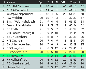Hassia Dieburg rutschte nach der 1:2-Niederlage gegen den FC Fürth ans Tabellenende ab. Auch der FC Ober-Ramstadt und der TSV Langstadt konnten im Abstiegskampf keinen Boden gut machen. Eintracht
