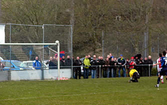 an den linken Torpfosten, der abprallende Ball kam zum einschußbereiten