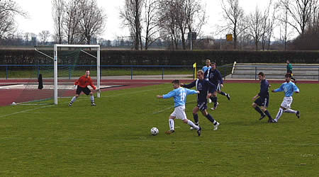 Berichterstatter Uli Wagner vom TSV sah ein insgesamt sehr faires Spiel. Nach der langen Winterpause und dem ausgefallenen Spiel vom Vorsonntag fand Seckmauern schnell in die Partie, und schon nach 120 Sekunden hatte der starke Neuzugang Benjamin Bertholdt die erste nennenswerte Gelegenheit, doch sein strammer Schuss fand in Lampertheims Torhüter Dennis Neudahm seinen Meister. Von diesem ersten Schreck erholten sich die Platzherren so nach und nach und gestalteten die Partie zumindest optisch überlegen. In der zwölften Spielminute lenkte Özkan Cin per Kopf den Ball in Richtung TSV-Tor. Keeper Markus Schäfer, der eher selten geprüft wurde, hielt aber ohne große Mühe; genauso wie 180 Sekunden danach bei einem harten Distanzschuss von Matthias Burosch. Lampertheim steigerte das Tempo, suchte die entscheidende Lücke in der Abwehr des Gegners, doch die Seckmaurer hielten kämpferisch dagegen, konnten aber weitere Chancen der Heimelf nicht gänzlich unterbinden. Der ansonsten so treffsichere Torjäger Michael Gärtner hatte dann gegen Ende der ersten Halbzeit die größte Möglichkeit für Olympia, doch sein Kopfball im Fünfmeterraum bereitete dem gut postierten Torhüter Schäfer kein Mühe (39.). Nach Wiederanpfiff avancierte der agile Lampertheimer Mittelfeldspieler Alexander Scholl zum besten Mann auf dem Platz. Alle gefährlichen Angriffe liefen über ihn. Seckmauern bekam ihn nie in den Griff und hatte in der Folgezeit manch brenzlige Situation zu überstehen. Doch an diesem Tage ließ der Spielmacher Torjägerqualitäten vermissen, trotz der einen oder anderen guten Gelegenheit. Erst nach einer guten Stunde kamen auch die Gäste wieder einmal gefährlich vor das Tor der Lampertheimer, jedoch der zweite TSV-Neuzugang, Max Henkes, verpasste allein vor dem gegnerischen Tor, nur knapp eine Hereingabe. Es entwickelte sich nun ein offener Schlagabtausch mit Torraumszenen hüben und drüben. Seckmauern nutzte jetzt die Räume, die ihnen die fast schon bedingungslos angreifenden Platzherren eröffneten, und starteten gefährlich und schnell vorgetragene Konter, aber die letzte Konzentration wurde beim Abschluss vermisst und die wenigen Gelegenheiten teilweise überhastet vergeben. Fünf