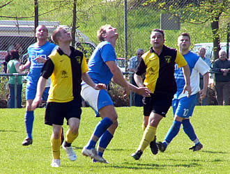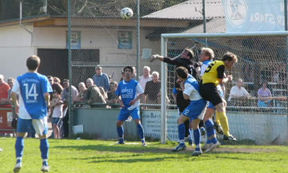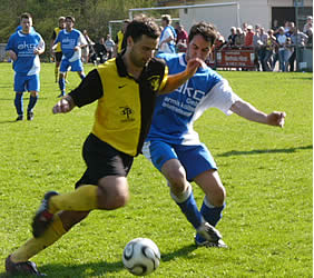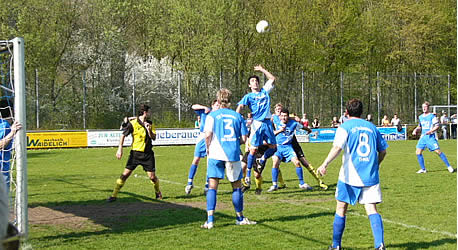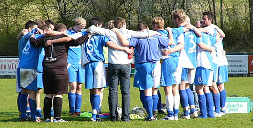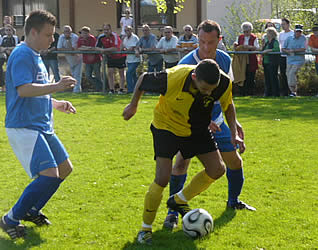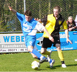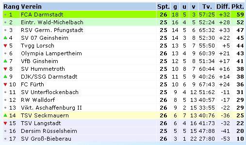 - Krejtscha Schiedsrichter: Tobias Laible (DJK Hattersheim) - Zuschauer: 200 In einem regelrechten Abnutzungskampf bezwang der abstiegsbedrohte TSV die hoch gehandelte Mannschaft aus Geinsheim mit 3:0. Damit überflügelte man in der Tabelle den TSV Langstadt, steht mit 25 Punkten auf dem Relegationsplatz und hat wieder Anschluss an die vor ihm stehenden Mannschaften gefunden. Das nächste Endspiel steigt schon am nächsten Spieltag mit dem Heimspiel gegen RW Walldorf (29 Punkte). Bei sommerlichen Temperaturen gingen beide Teams gleich hohes Tempo. Man schenkte sich keinen Meter Boden. Während Ex-Oberligist Geinsheim versuchte auch mit spielerischen Mitteln zum Erfolg zu kommen, setzte Seckmauern dem seine bewährte Kampfkraft entgegen. Und hatte Erfolg damit. Mit zunehmender Spielzeit kaufte Seckmauern den Gästen den Schneid ab und erspielte sich dazu auch noch entsprechend gute Chancen. Scheiterte Krejtscha in der 5. Minute nach Bertholds Zuspiel noch an TW Pommer, war er nur kurze Zeit später hellwach. Er nahm einen langen Pass von Burak auf, lief noch 20m und erzielte aus halblinker Position an TW Pommer vorbei die 1:0-Führung (8.). Nach 19 Minuten wuselte sich Florian Canbolat im Strafraum mit Glück durch, in guter Position misslang ihm aber der Torschuss. Geinsheim spielte auch gut mit, aber spätestens am Strafraum war es mit der Herrlichkeit der Gäste vorbei. Man fand einfach nicht die richtigen Mittel für den richtigen Abschluss. Hier leisteten Kislinkiy (gegen Karoaytu), Verst (gegen Cifcti) und Berthold (gegen Neuser) hervorragende Abwehrarbeit. Auch in der 21. Minute, als der SV gleich dreimal den Ausgleich auf dem Fuß hatte, warfen sich immer wieder Spieler Seckmauerns in die Schüsse des Gegners bis der Ball endlich aus der Gefahrenzone war. Diese misslungenen Angriffsbemühungen zogen sich wie ein roter Faden durch das Spiel der Gäste. Ruprecht (25.) und Neuser (29., Volleyschuss nach Vorlage von Jung) vergaben ebenfalls. Zu diesem Zeitpunkt führte Seckmauern aber schon mit 2:0. Nach einem Eckball kam Florian Canbolat an der Strafraumgrenze frei zum Schuss und beförderte den Ball gezielt ins Tor (28). Dies beflügelte den TSV weiter. Nach guter Kombination über fünf Stationen brachte Berthold den Ball aus spitzem Winkel nicht im Tor unter (30.), ein Kopfball Seiferts strich knapp über das Gehäuse (34.). Als Thiel den fast durchgebrochenen Rupprecht in Höhe der Mittellinie foulte, erhielt er dafür zu Recht die gelbe Karte (36.). Für Geinsheim lief es im Angriff weiter äußerst unglücklich. Wieder warf sich ein TSV-Spieler in einen guten Schuss, der sein Ziel sonst gefunden hätte (40.,Neuser). Gefährlicher im Angriff war in der ersten Halbzeit zweifellos Seckmauern. Auch die letzte Gelegenheit besaß der TSV, als Krejtscha einen langen Ball von Thiel erlief, der Winkel für einen Torerfolg aber zu spitz geriet. Seckmauern setzte sein forsches Spiel auch in der zweiten Hälfte fort. Die ersten Minuten gehörten dabei Florian Canbolat, der zweimal am rechten Flügel gut eingesetzt wurde, zweimal sehr gut in die Mitte servierte, aber dort zweimal keinen Abnehmer fand; nach einem feinen Zuspiel von Seifert marschierte Canbolat frei auf das gegnerische Tor zu, wurde jedoch kurz vor dem Ziel eingeholt und abgedrängt (57.). Olts Kunstschuss vom Mittelkreis über den zu weit vor dem Tor postierten TW Pommer misslang (59.). Das Spiel verflachte nun zusehends, das hohe Tempo der ersten Hälfte forderte bei beiden Teams seinen Tribut. Es gelang nicht mehr viel. Auch Geinsheim konnte nicht mehr zulegen, Seckmauern musste das Ergebnis nur noch verwalten. Nachdem Ciftci einen Kopfball knapp über die Latte setzte (64.) erhielt der Sturmführer 15 Minuten später die rote Karte von Referee Laible wegen Meckersn und Schiedsrichterbeleidigung. Nun war das Spiel endgültig entschieden. Zu allem Überfluss für die Gäste fiel das 3:0 durch ein blitzsauberes Eigentor von Roth, der eine scharfe flache Hereingabe von Sirin über die Linie drückte (82.). Bei noch konsequenterer Chancenverwertung hätte Seckmauern in der Schlussphase noch zwei Tore machen müssen, Seifert scheiterte zweimal in bester Position (84./87.). Es war im Nachhinein unglaublich, welche Chancen die drittbeste Abwehr der Liga im Laufe des Spiels zuließ. Nach Abpfiff tanzten die Spieler Seckmauerns im Kreis freudetrunken ob des überraschenden und auch hohen Sieges. Ein schönes Ostergeschenk. (aus echo-online.de) Abwehr legt Basis zum Heimsieg Fußball-Gruppenliga: TSV Seckmauern besiegt zu Hause mit 3:0 überraschend klar den SV Geinsheim Von Franz HoffmannIn der Fußball-Gruppenliga Darmstadt hat der TSV Seckmauern am Ostersamstag im Nachholspiel dem SV 07 Geinsheim drei Ostereier ins Nest geleg. Die abstiegsbedrohten Odenwälder gewannen diesen äußerst wichtigen Vergleich mit 3:0 (2:0) und verbesserten sich in der Tabelle auf den Abstiegsrelegationsplatz. Hochkonzentriert begannen die Odenwälder gegen den Tabellenvierten, der zunächst nicht zu dem befürchteten schnellen Offensivspiel fand. Ganz anders da die Platzherren, deren Mittelfeldakteur Ercan Burak schon nach acht Minuten seinen Mannschaftskollegen und Torjäger Marcus Krejtscha mit einem feinen Pass auf die Reise in den gegnerischen Strafraum schickte und der aus gut 16 Metern trocken ins lange Eck zur frühen Führung für die Platzherren traf. Ein Auftakt nach Maß, der Ruhe gab und den hochfavorisierten Gästen doch einiges von ihrem Schneid abkaufte Die Partie spielte sich nun überwiegend im Mittelfeld ab. Nicht so jedoch in der 21. Minute, als den TSV Seckmauern nur Riesendusel vor dem Ausgleich bewahrte. Die aufgerückte Abwehr wurde von einem langen Pass der Geinsheimer überrascht und deren Claudius Neuser scheiterte gleich zweimal binnen Sekundenfrist in aussichtsreicher Lage an dem wiedergenesen sicheren Torhüter Markus Schäfer und seinen Vorderleuten (21.), die sich in seine Schüsse warfen. Der Gast wurde jetzt stärker