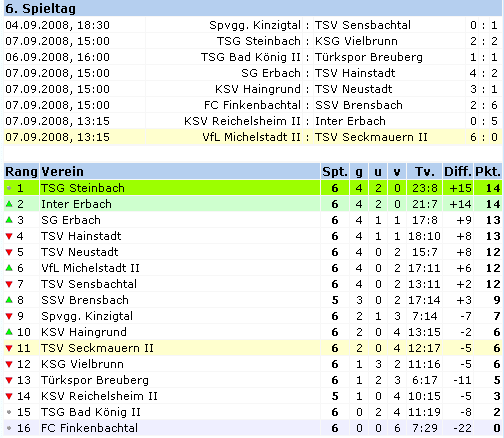 VfL Michelstadt II – TSV Seckmauern II 6:0 (3:0)