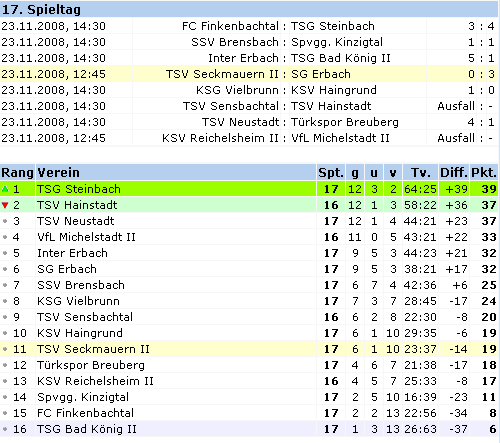 II – VfL Michelstadt II und TSV Sensbachtal – TSV Hainstadt
