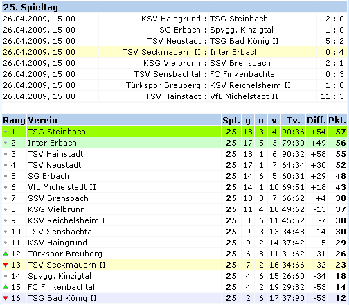 (85.), 5:2 Michael Lorenz (85.). Schiedsrichter: Adam (Heimbuchenthal).