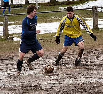 Stellen noch gefrorenen Platz war kontrolliertes Spiel schwer möglich.