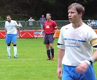 beim FC Rimhorn (7.Juli - 13.Juli 2008) Gruppe 1 Mo 7. Juli: Rimhorn - Haingrund 8:2 Mi 9.Juli: TSV - Rimhorn 2:2 Fr 11.Juli 18.30 Uhr: TSV II - Haingrund 0:1 Seckmauern damit ausgeschieden ![]() TSV - Rimhorn: In der ersten Halbzeit kam Rimhorn dreimal vor das Seckmäurer Tor und erzielte zwei Treffer (1:0 Wüst, 2:1 Olt). Der TSV hatte zwar mehr vom Spiel, aber kaum zwingende Chancen. So mußte ein Freistoß von Stapp in der zweiten Halbzeit zum 2:2 herhalten. Rimhorn spielte mit Wüst, Olt und Platt-Siefert immer wieder gute Konter und vergab in der Schlußphase mehrfach fahrlässig den Siegtreffer. Neuzugang Emrah Bairam (im Bild li) bekam nur wenige Gelegenheiten sich auszuzeichnen, deutete aber hier seine Gefährlichkeit an. Sturmpartner Krejtscha (re) gelang dagegen das zwischenzeitliche 1:1. Seckmauern spielte ohne Seifert, Burak, Kislinskiy und Schäfer. (aus OE vom 15. Juli 2008) A-Junioren-Auswahl düpiert die Konkurrenz Fußball: Nachwuchs holt Ortsmeisterschaft – Mümling-Grumbach gewinnt Wochenturnier Der FC Rimhorn hatte sich für sein Fußball-Wochenturnier etwas besonderes einfallen lassen und richtete parallel dazu die Lützelbacher Ortsmeisterschaft aus. Verdienter Sieger beim Wochenturnier war A-Ligist FV Mümling-Grumbach, der zwei Teams an den Start brachte und mit seiner stärkeren zweiten Elf das Endspiel gegen den B-Ligist TSV Hainstadt mit 4:1 gewann. Schon in der Vorrunde hatten sich die Mümling-Grumbacher gegen B-Liga-Aufsteiger Spvgg Kinzigtal klar durchgesetzt und gegen den personell deutlich verstärkten TSV Neustadt ein 2:2 erkämpft; dies reichte zum Einzug ins Endspiel. In der anderen Vorrundengruppe setzte sich der TSV Hainstadt mit zwei souveränen Siegen durch. Für